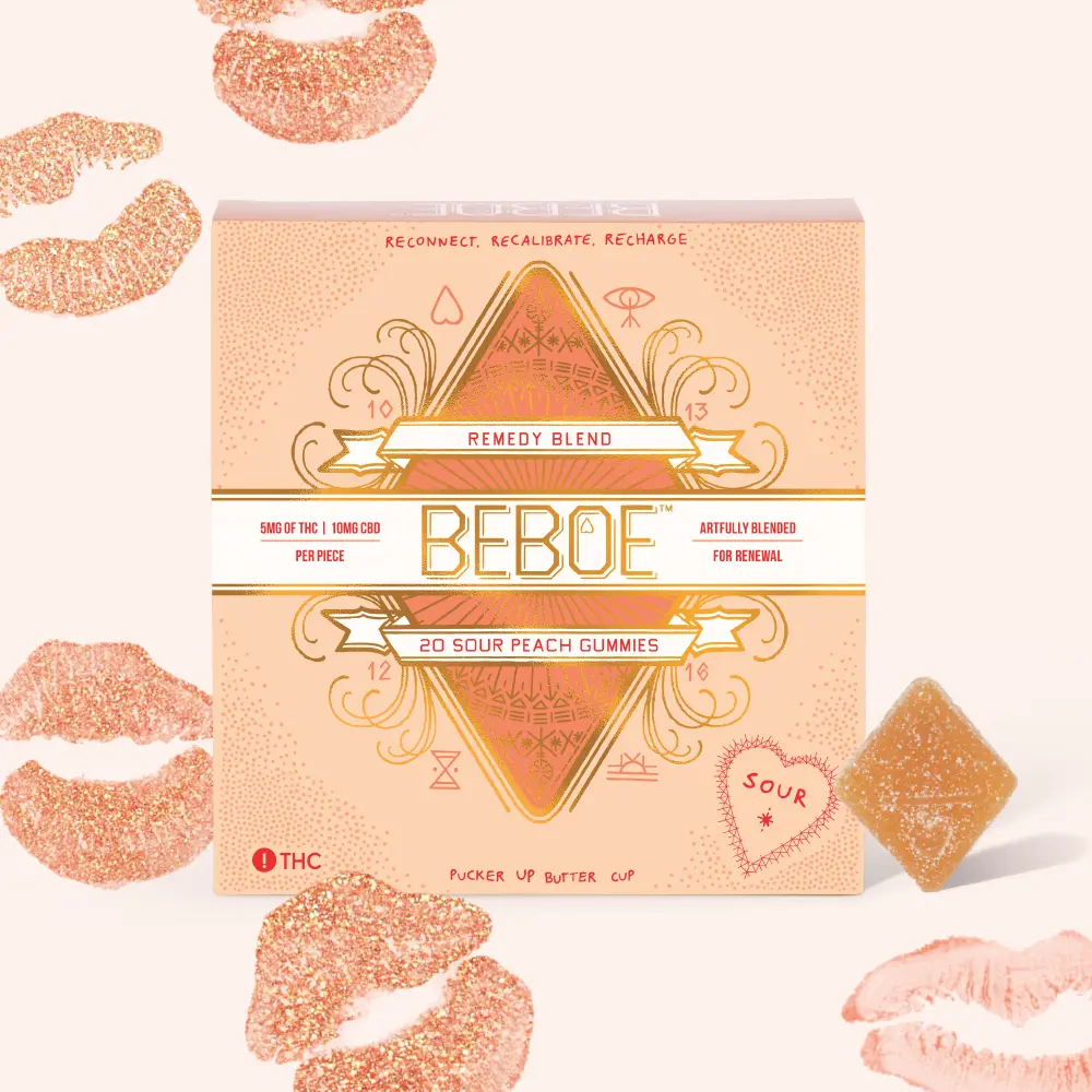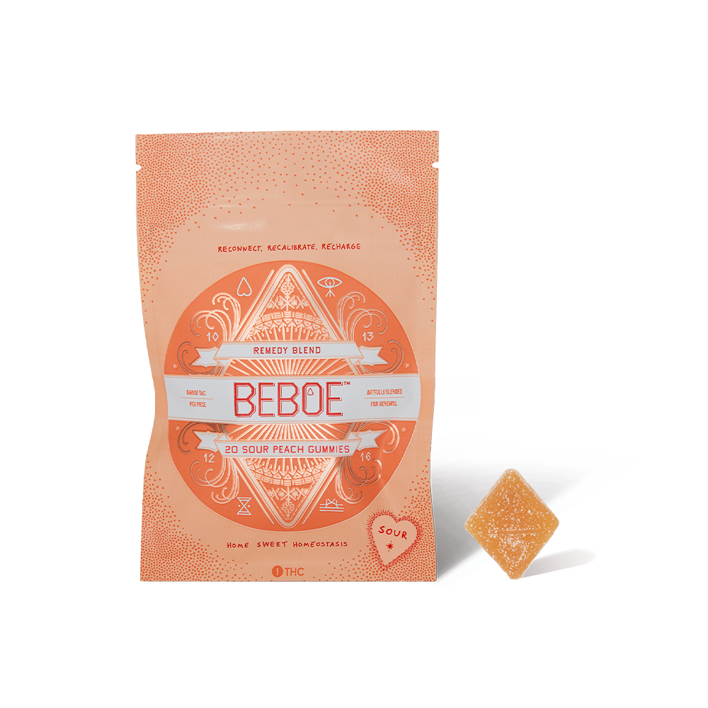 Beboe Remedy Sour Golden Peach Gummies 2:1 CBD:THC 100mg (5mg 20-pack)
