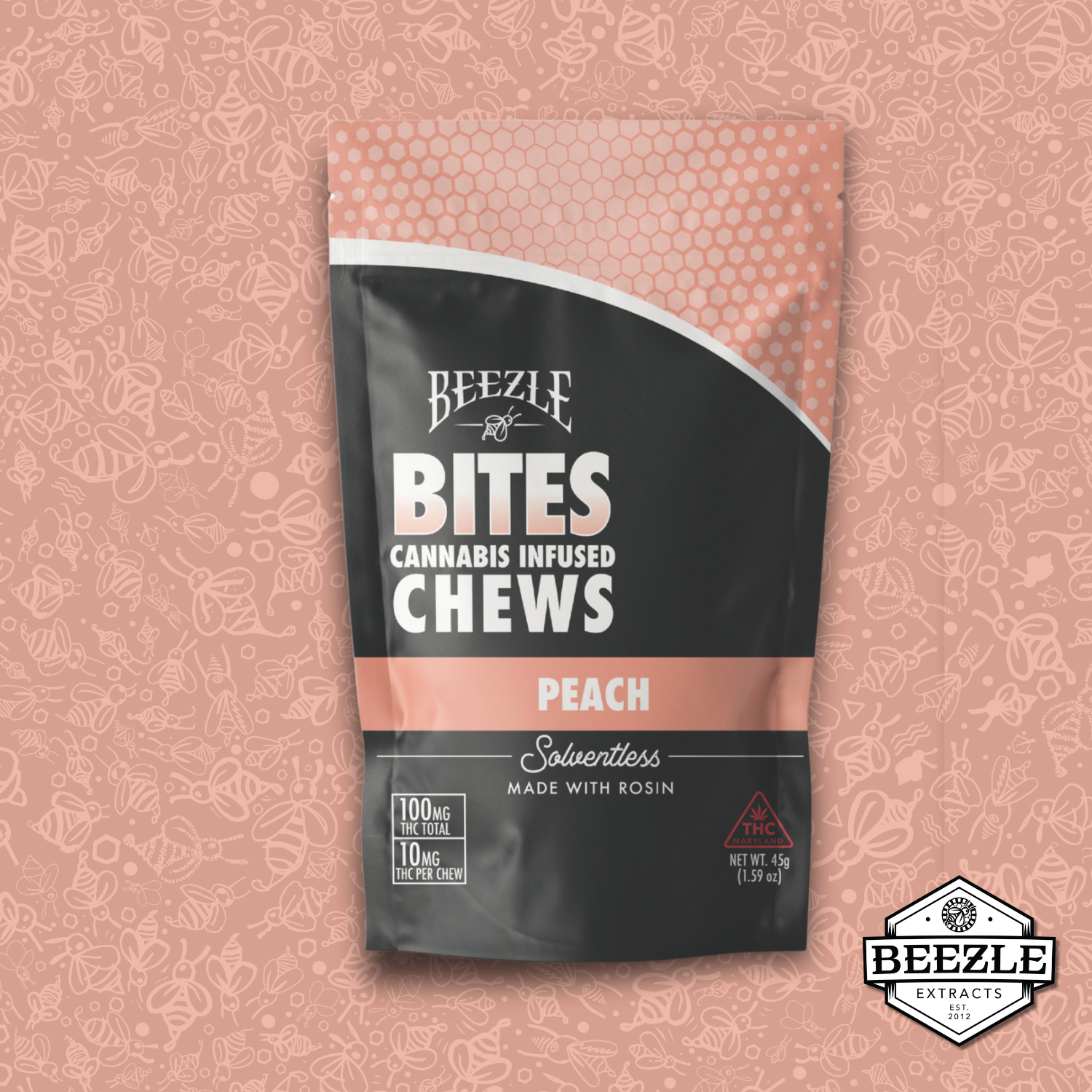 Beezle Bites | Peach Solventless Rosin Chew Gummies 10pk I 100mg