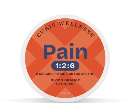 Curio | Chews | PAIN | Blood Orange 1:4:2 CBD:THC | 10 x 5mg CBG: 20mg CBD: 10mg THC