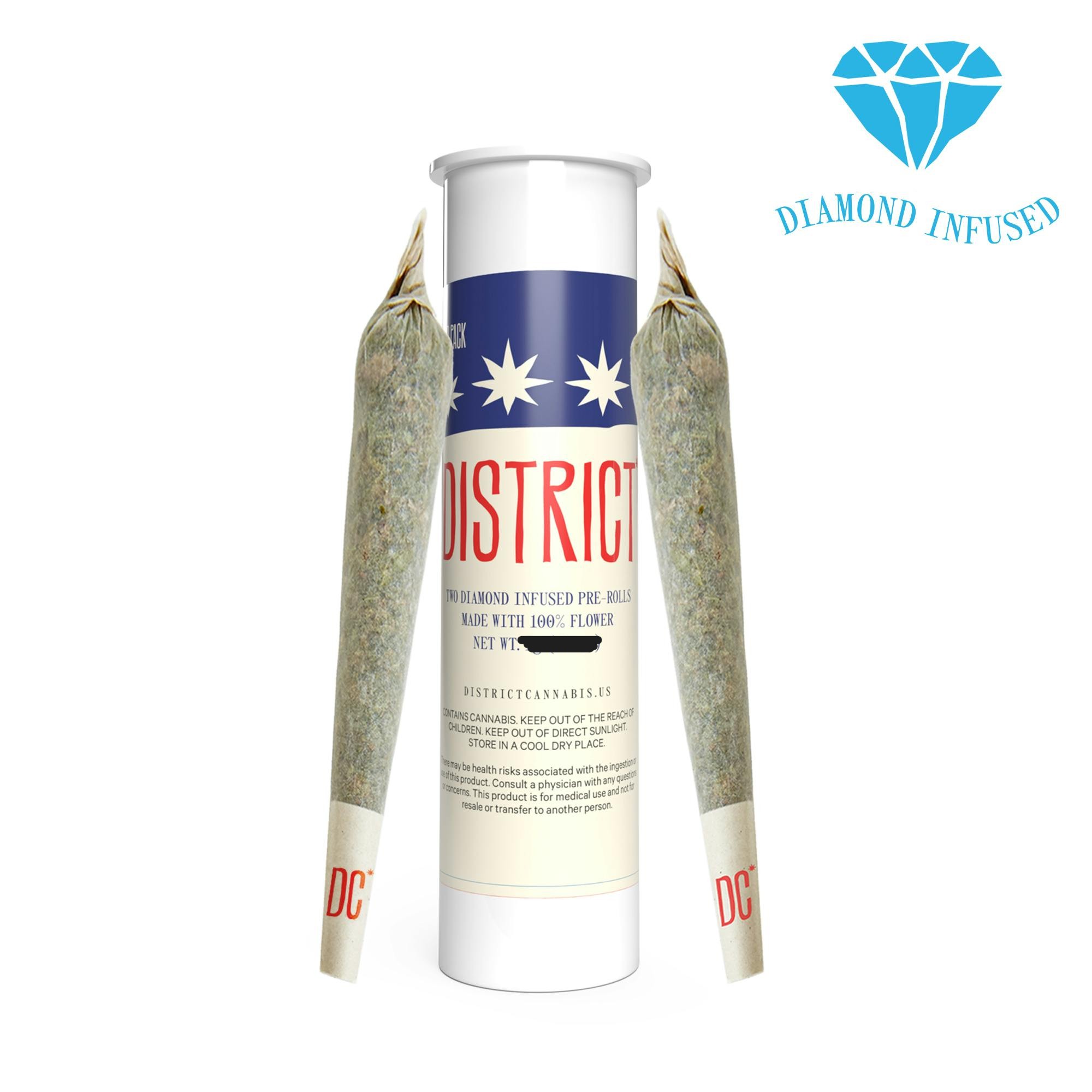 District Cannabis Diamond Infused Preroll (2x0.45g) Gelato Cake
