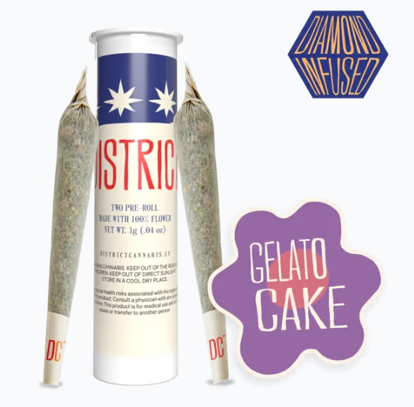 District Cannabis | Gelato Cake | 0.45g Diamond Infused Pre Roll (2pk)