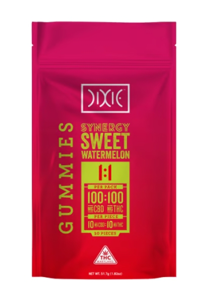 Dixie 10mg 1:1 Synergy Sweet Melon Gummies - 100mg THC:100mg CBD