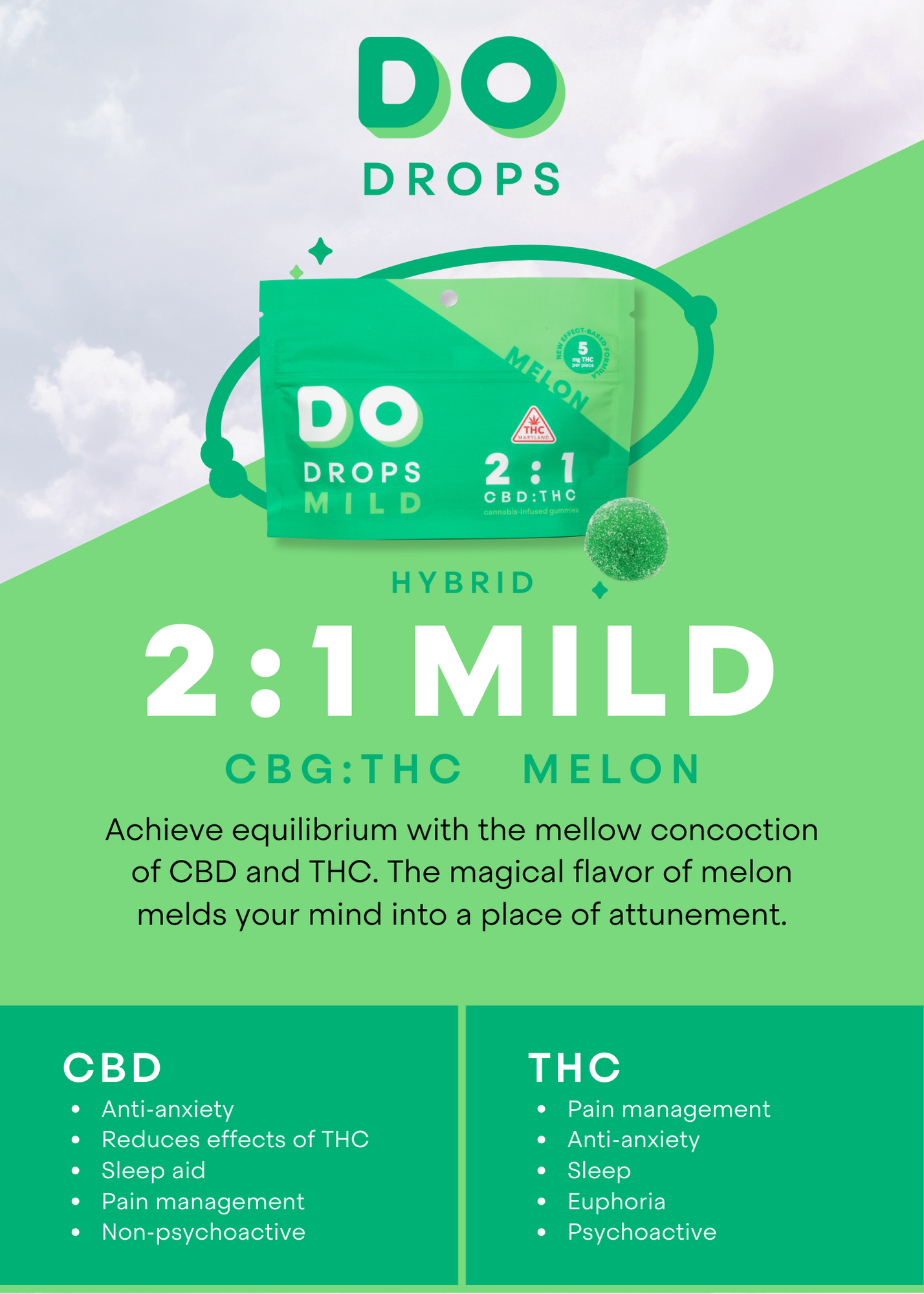 Mild Melon 2:1 (10mg CBD : 5mg THC) Gummies || DO Drops