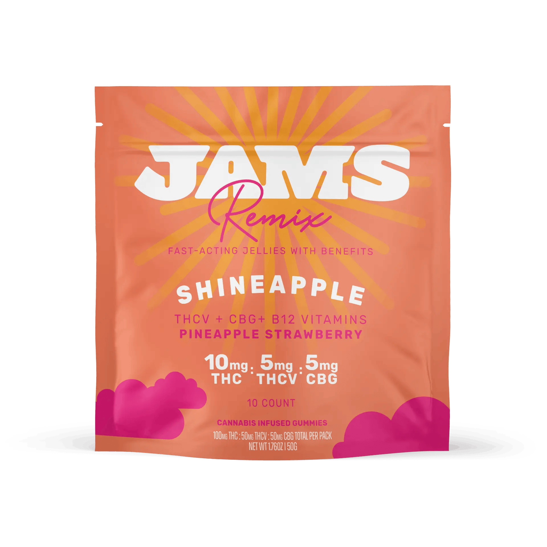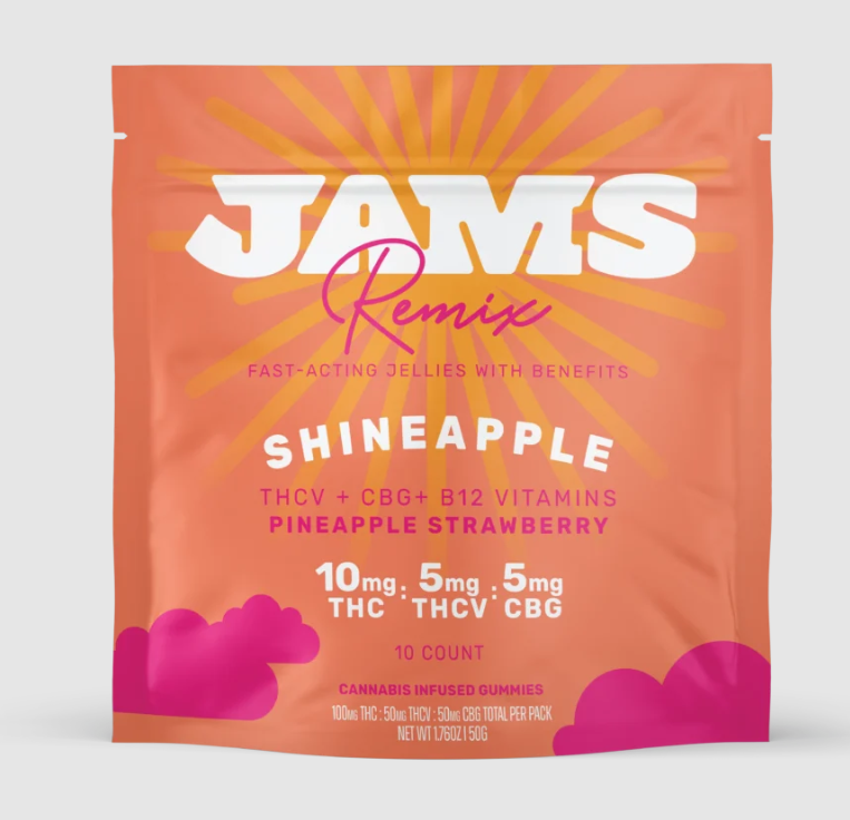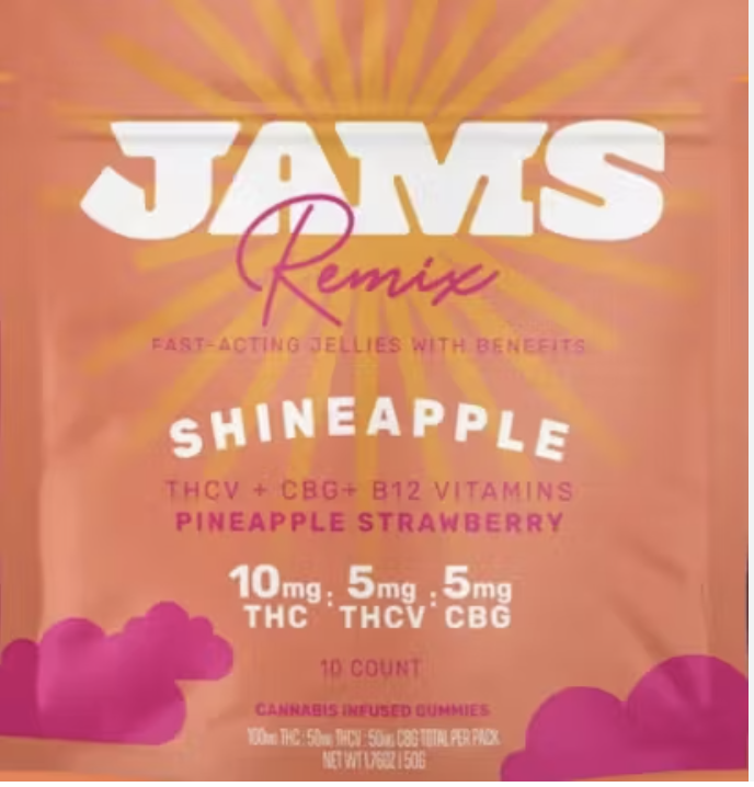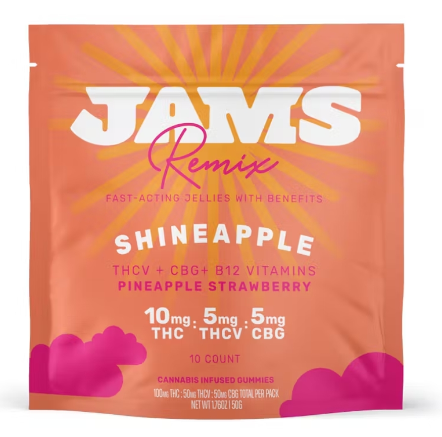 Jams Jellies Remix 100mg (THC:THCV:CBG) 10ct Shineapple Strawberry Pineapple