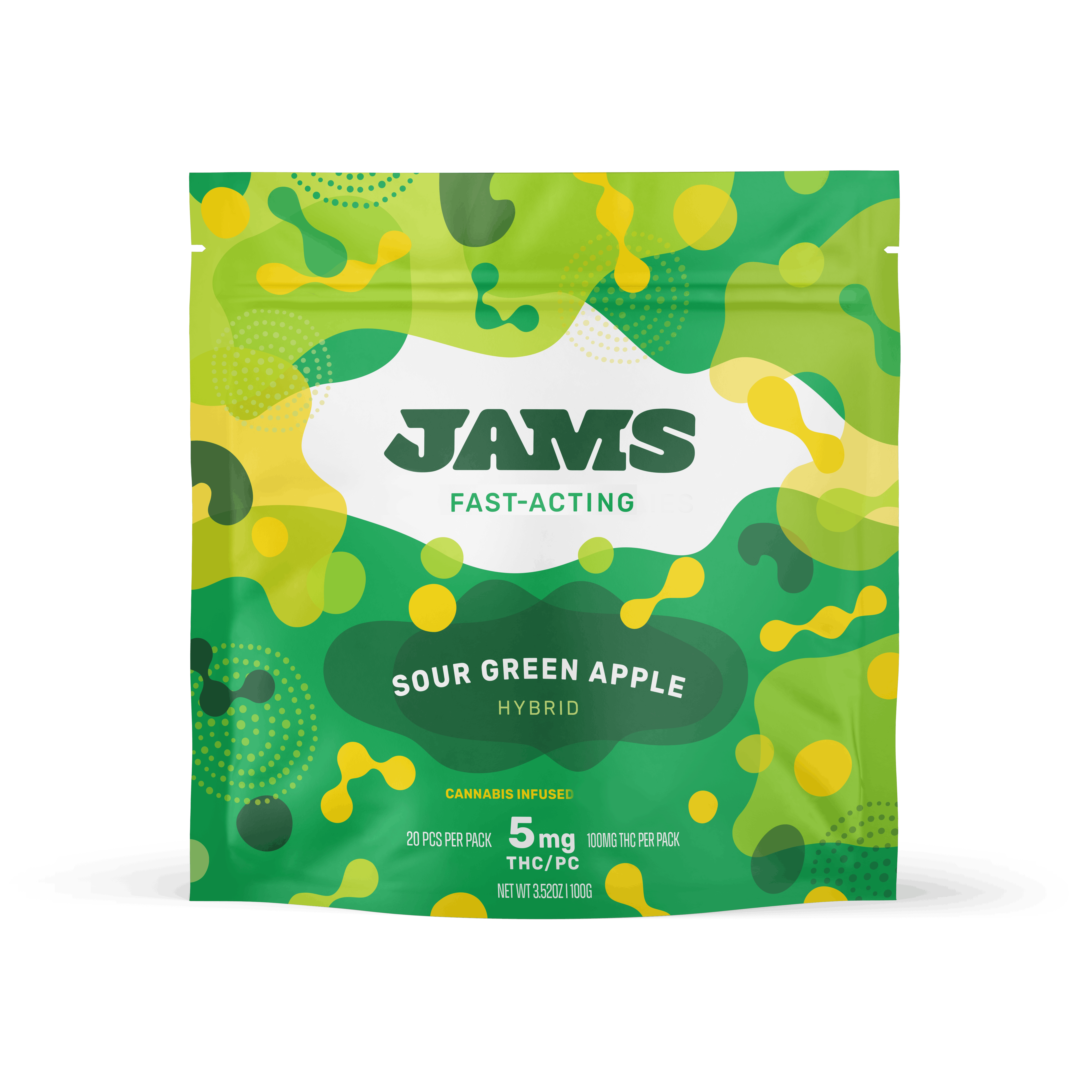 Jams Fast Acting Jellies 100mg 20ct Sour Green Apple Hybrid