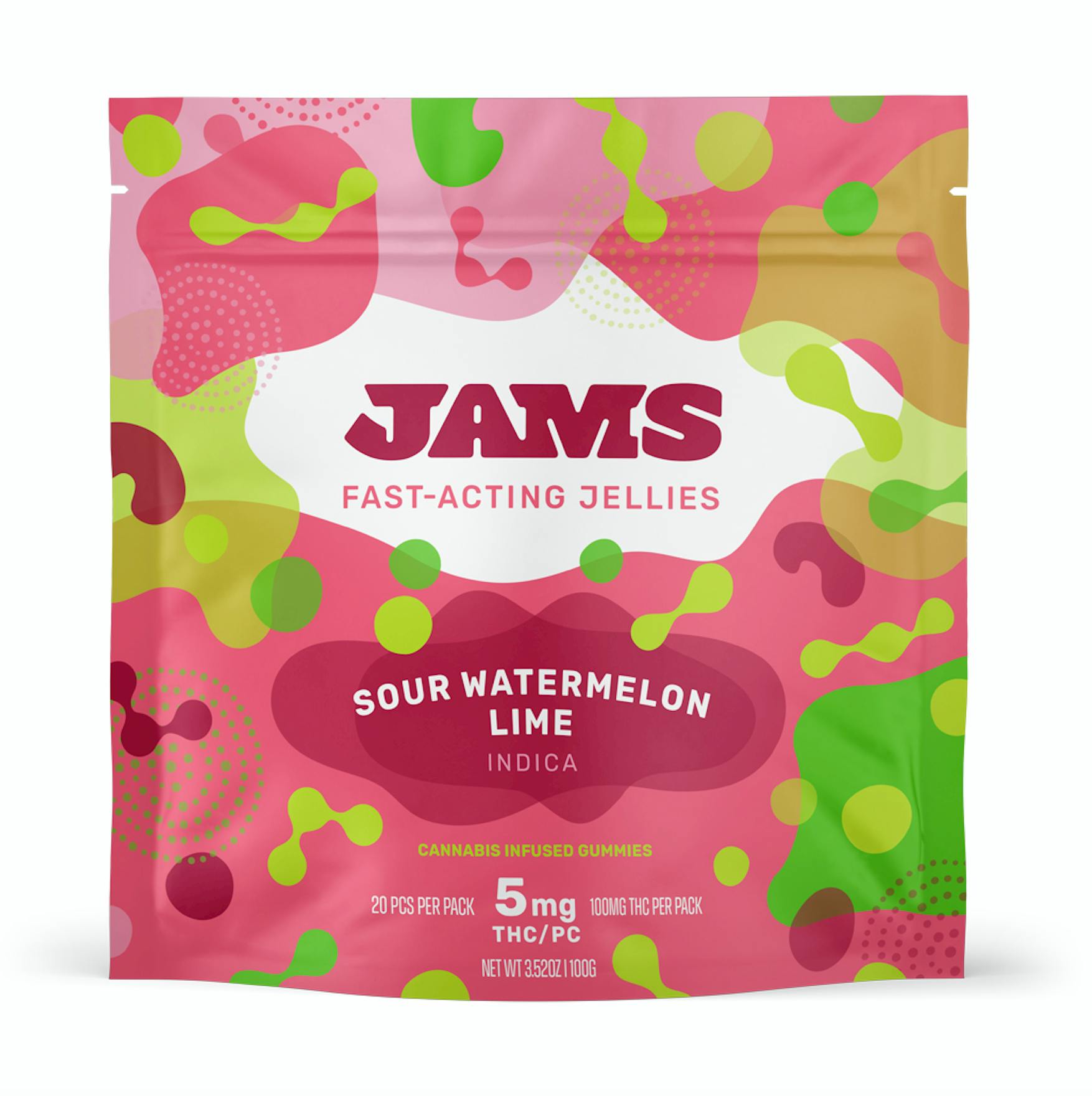 JAMS Sour Watermelon Lime Indica Fast Acting Jellies 20-Pack | 100mg