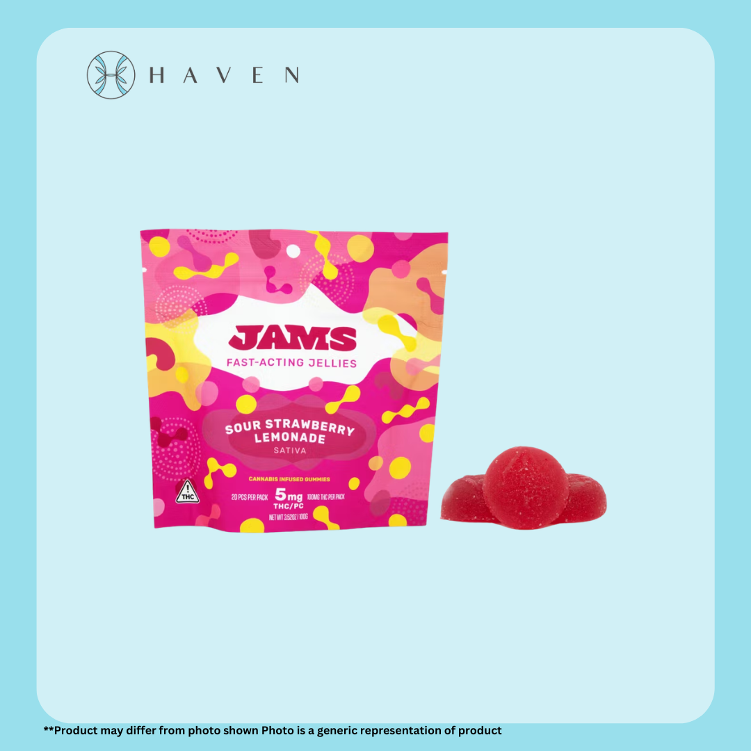 JAMS Sour Strawberry Lemonade Sativa Fast Acting Jellies 20-Pack | 100mg
